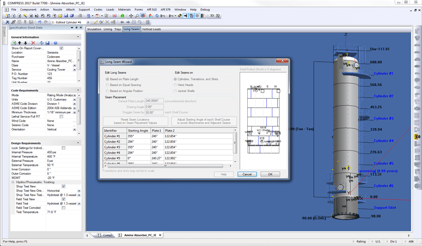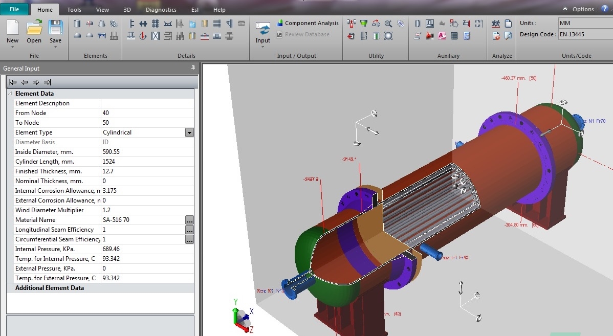 • Mechanical design of pressure vessels and columns per ASME Sec. VIll Div.1, Div.2, EN 13445