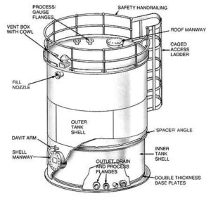 The API 650 is the American standard for welded flat-bottomed vertical storage tanks. API 650 vertical tanks meet American Petroleum Industries (API) standards in design, material, fabrication, and testing of aboveground welded steel storage tanks for use in industrial applications. A typical vertical storage tank will have a staircase or stairway or possibly even a cage ladder. All inspections shell be performed by an inspector who is licensed and trained on the requirements.